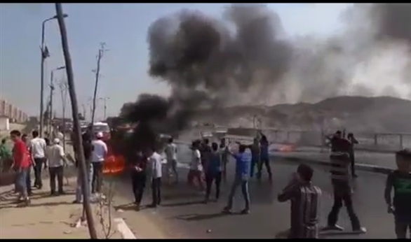 قطع منذ قليل، أنصار الرئيس المعزول الطريق فى محيط كارفور المعادى على طريق الأوتوستراد وأشعل عدد منهم النيران فى إطارات السيارات وسط هتافات معادية للقوات المسلحة والشرطة ووزير الداخلية.