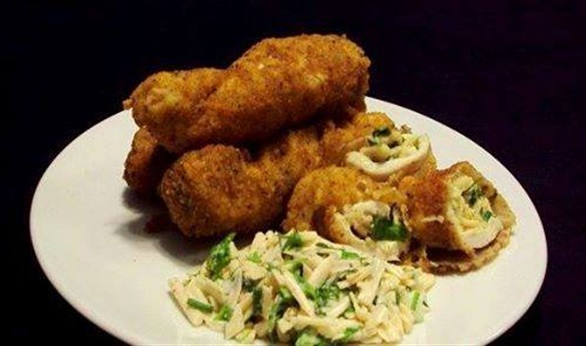 توضع القطع في البيض ثم في البقسماط و تقلي في زيت ساخن .