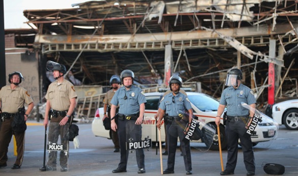 ولكن شرطة الانتشار السريع في ميسوري قالت إنها استخدمت قنابل الغاز لتفريق "معتدين" كانوا يحاولون اختراق موقع قيادة لإنفاذ القانون ،وان المدرعات أرسلت لضمان السلامة العامة.