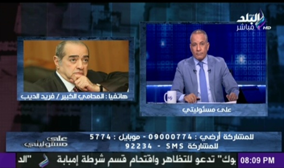وأضاف الديب - خلال مكالمة هاتفية مع الإعلامي أحمد موسي، في برنامج "علي مسؤليتي" المذاع علي فضائية "صدي البلد" - إنه تم إلغاء ندب المستشار عادل أدريس من قبل المستشار نبيل صليب، رئيس محكمة الاستئناف السابق، وإسناد قضية "تزوير الانتخابات الرئاسية" إلى قاض آخر، لافتا إلى أن جماعة الإخوان تروج لشائعة أن بطلان انتخابات مرسي؛ تعني بطلان انتخاب الرئيس عبدالفتاح السيسي رئيسا للجمهورية، بفضل ان مرسي هو من قام بتعيين الرئيس السيسي وزيرا للدفاع.