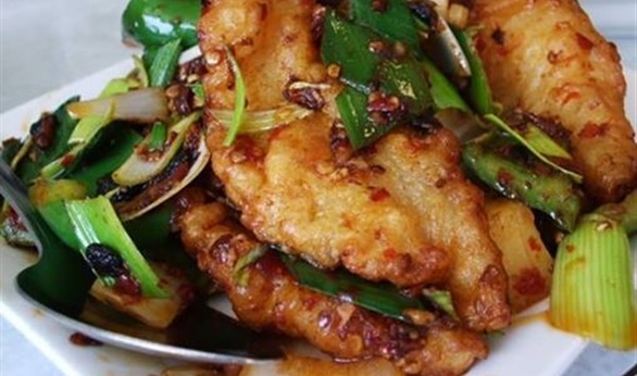 قلبى الثوم مع التوابل وتستعمل نصف الكمية لفرك السمكة من الداخل والخارج وتقلى السمكة قليلا في الزيت ثم توضع في صينية