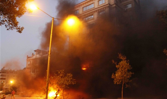 اندلاع النيران بمقر حزب العدالة والتنمية بمحافظة موش التركية