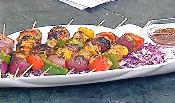 ابشري الكرنب وقدمي فوقه الشيش ووقدمي معه صوص الكاتشاب والباربكيو.
