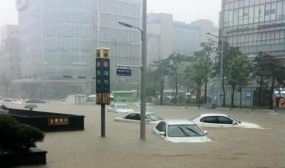 وذكرت وكالة أنباء يونهاب الكورية الجنوبية أان الأمطار التي هطلت على مدينة بوسان الساحلية والمناطق المجاورة في مقاطعة كيونج سانج الجنوبية سجلت رقما قياسيا ببلوغها 130 ملليمترا في الساعة، ما تسبب في حدوث انهيارات أرضية وتعليق خدمات السكك الحديدية وتوقيف مؤقت لمحطة الطاقة النووية.