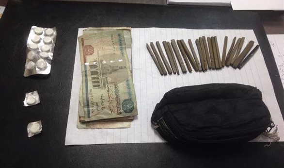 وتم ضبط محمد - م - ع 27 سنة - عامل - مقيم مطروح وبحوزته 6 قطع متوسطة لمادة داكنة اللون يشتبه أن تكون لجوهر الحشيش المخدر و6 اقراص لعقار الترامادول المخدر.