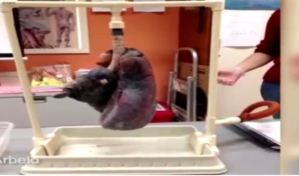 وقام بتحميل الفيديو على موقع Vine الباحث ديفون أربيلو، الذي أراد أن يوضح مدى تأثير التبغ على قدرات الرئة في التنفس، وكيف يمكن أن يحول لونها إلى الأسود القاتم.