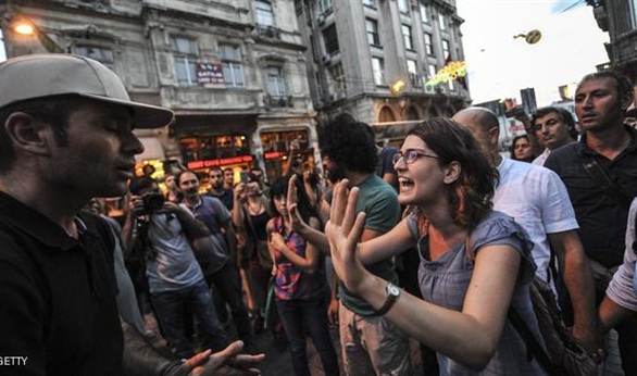 200 شخص يتظاهرون ضد "أردوغان".. والشرطة تستخدم الغاز لتفريقهم