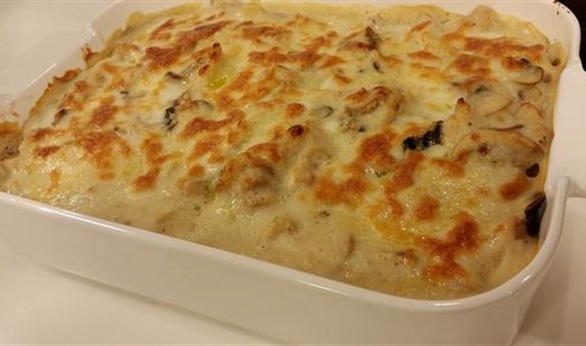 يمكن خلط الحشوة بالبشاميل، ثم اضافتها للمكرونة.