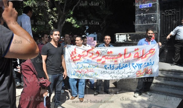 ينظم طلاب الماجستير والدكتوراه، وقفة احتجاجية أمام مجلس الوزارء بشارع القصر العيني في الثانية عشرة ظهرا؛ للمطالبة بالتوقيع علي قرار تعيينهم طبقًا لمذكرة تم إرسالها إلى المجلس الجهاز المركزى للتنظيم والإدارة، بوجود وظائف شاغرة لهم.