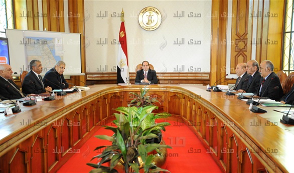 اجتمع الرئيس/ عبد الفتاح السيسي، اليوم بمقر رئاسة الجمهورية بمصر الجديدة، بالمهندس/ إبراهيم محلب، رئيس مجلس الوزراء، وذلك بحضور عادل لبيب، وزير التنمية المحلية، والسادة محافظي الإسكندرية ومطروح وكفر الشيخ والدقهلية والغربية ودمياط والبحيرة والمنوفية، فضلا ًعن السادة مدير إدارة المساحة العسكرية، ورئيس جهاز استخدامات أراضي الدولة، ورئيس الهيئة العامة للتخطيط العمراني، ورئيس الهيئة العامة للمساحة.