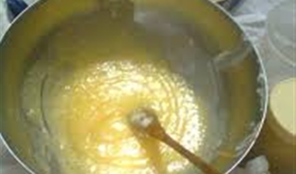 يخلط كل من كريم الجلسولين مع الجسلرين السائل بمعلقة خشبية ثم يضاف الخليط بودرة الاطفال ويترك طويلا علي جنب