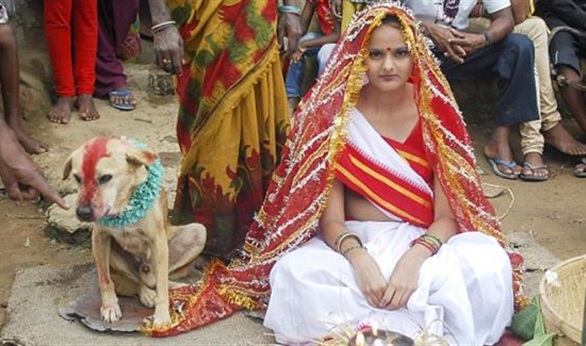 أحضر رجل هندي، في سيارة مزينة ، كلباً ضالا إلى الاحتفال الشعبي في قريته لتزويجه لابنته المراهقة، أملاً في طرد النحس من العائلة، بناء على نصيحة المعلم الروحي للقرية حسب ماورد في صحيفة "ديلي ميل" البريطانية .