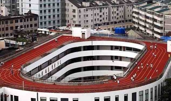 حولت مدرسة ابتدائية بمقاطعة “تشجيانج تيانتاى” الصينية، سطحها إلى حلبة سباق للجري يبلغ طوله 200 متر, وذلك لاستغلال مساحته من أجل حصص التربية البدنية في المدرسة- حسب موقع "ميرور نيوز"-.