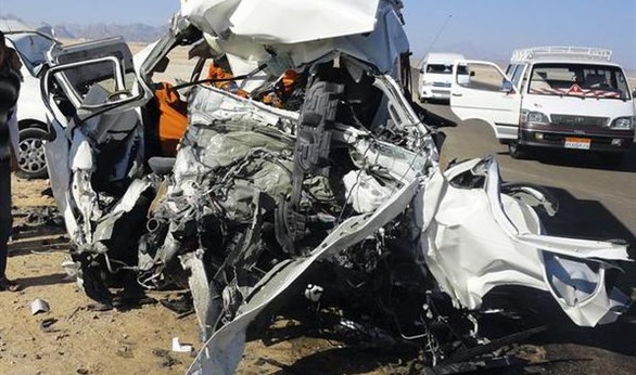 مصرع 7 أشخاص وإصابة 9 في تصادم سيارتين بالعين السخنة بالسويس