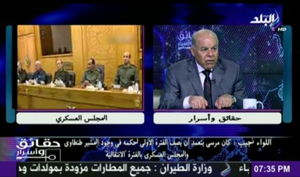 وأضاف عبدالسلام ، خلال حواره مع الإعلامي مصطفي بكري ، في برنامج "حقائق وأسرار" المذاع علي فضائية "صدي البلد" ان المجلس العسكري لم يتدخل في الحكم خلال فتره حكم "مرسي " ولكن فراغ البرلمان جعل له دور في حماية الوضع الدستوري القائم مضيفا أن الملامح الأولية للجهاز المعاون" لمرسي "بدأت تأخذ شكله الدستوري ماعدا أسعد الشيخة الذي لم تعلن وظيفته .