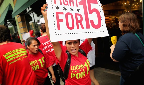 نظم المئات من عمال مطاعم الوجبات السريعة إضربا اليوم /الخميس/ في أكثر من 150 مدينة أمريكية وذلك للمطابة بمضاعفة أجورهم إلى 15 دولارا في الساعة بدلا من 7.5 دولار والسماح لهم بإقامة نقابة خاصة بهم.