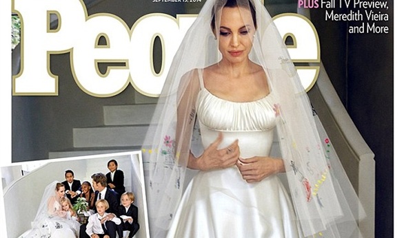 ووفقا لمصدر مطلع أدلى بتصريحات خاصة "ميل أون لاين"، فإن براد -50 عاما – وأنجلينا -39- تلقيا 2,5 مليون دولار من كل مجلة على حدة لاختيار بعض الصور من حفل الزفاف. وتمتلك مجلة هالو "Hello" حقوقا فكرية لنشر الصور، وقبل الزفاف قام كل من بيت وجولى باختيار مصور من وكالة "جيتى" للصور لالتقاط صور زفاف العام.
