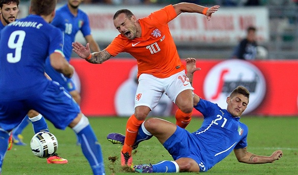 حقق المنتخب الايطالي لكرة القدم فوزا مستحقاعلى نظيره الهولندي بهدفين نظيفين في المباراة الودية التي اقيمت بينهما في باري في اطار استعدادات الفريقين لتصفيات كأس الأمم الأوروبية التي تستضيفها فرنسا.