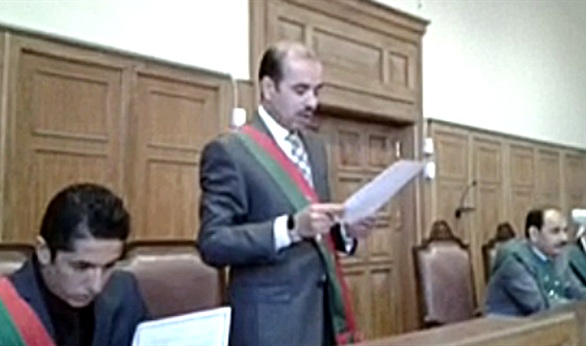 بدأت منذ قبل قليل الدائرة التاسعة بمحكمة جنايات أسيوط برئاسة المستشار عبد الهادي محمد خليفة نظر القضية رقم 3550 قسم ثان لسنة2014 والمتهم فيها وحيد أحمد محمد أمام مسجد بمديرية أوقاف أسيوط بالانضمام الى جماعة محظورة .