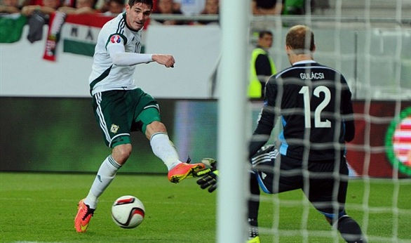 فاز المنتخب الأيرلندي الشمالي على نظيره المجري بهدفين لهدف في الجولة الأولى من منافسات المجموعة السادسة من تصفيات كأس الأمم الأوروبية التي تستضيفها فرنسا في 2016.