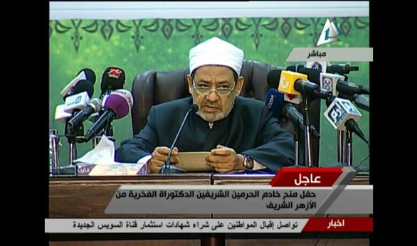 جاء ذلك خلال حفل منح خادم الحرمين الشريفين الدكتوراة الفخرية من الأزهر الشريف، اليوم الاثنين، بحضور الأمين العام لجامعة الدول العربية نبيل العربي، والوزراء وشخصيات عامة.