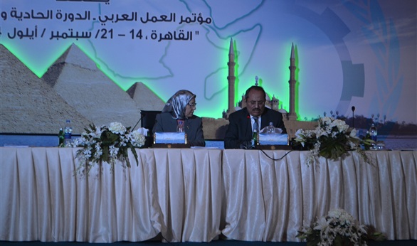 بمناسبة اختتام أعمال الدورة الحادية والأربعين لمؤتمر العمل العربي والتي عقدت في مصر العزيزة مهد الحضارة وارض الكنانة والبطولة، يسعد المشاركون من رؤساء وأعضاء الوفود ممثلي أطراف الإنتاج"حكومات وأصحاب الأعمال وعمال" في الوطن العربي أن يرفعوا إلي فخامتكم أسمي آيات الشكر والاعتزاز لرعايتكم الكريمة لأعمال المؤتمر وتشريف وزراء العمل بلقائكم والاستماع إلي آرائكم وتوجهاتكم والتي تعكس ما تملكونه من فكر عميق حول قضايا التنمية والتشغيل ورؤية ثاقبة بشأن أهمية التعاون العربي لمواجهة التحديات التي تواجه المنطقة العربية.