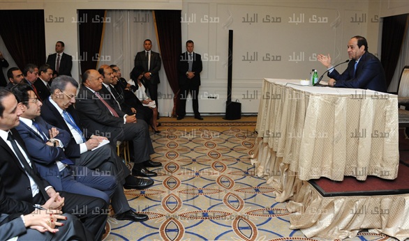 التقي الرئيس عبد الفتاح السيسي الإعلاميين المصريين الموجودين في نيويورك؛ لتغطية فعاليات أعمال الدورة الـ 69 للجمعية العامة للأمم المتحدة؛ لمناقشة العديد من القضايا المتعلقة بالشأن الداخلي والدولي، وقال إن استخدام الدين لتحقيق أهداف سياسية يعتبر أخطر شئ يمكن أن يواجه أي دولة.