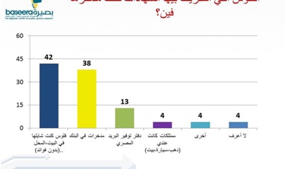 وتشير النتائج إلى أن النسبة الأكبر في المحافظات الحضرية (41%) سحبوا هذه المبالغ من ودائعهم البنكية مقابل 35% استخدموا مدخرات لم تكن مستغلة و10% سحبوا من ودائعهم بالبريد المصري. وفي المقابل فإن النسبة الأكبر من الوجه القبلي (47%) استخدموا مدخرات لم تكن مستغلة مقابل 42% سحبوا من ودائعهم البنكية و18% سحبوا من ودائعهم في البريد المصري، ونفس النمط يتكرر في الوجه البحري حيث استخدم 45% مدخرات لم تكن مستغلة و34% سحبوا من ودائعهم البنكية و12% سحبوا من ودائعهم في البريد المصري.