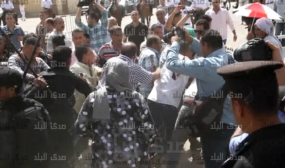 نشبت منذ قليل مشادات كلامية وتشابك بالايدى بين أهالى الشهداء ومؤيدى مبارك أمام مقر أكاديمية الشرطة بسبب اعتراض اهالى الشهداء على قرار المحكمة بـتأجيل صدور الحكم .
