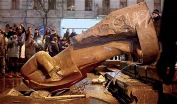 أسقط متظاهرون تمثالا لزعيم الثورة الاشتراكية فلاديمير لينين في ميدان "الحرية" وسط مدينة خاركوف الأوكرانية .