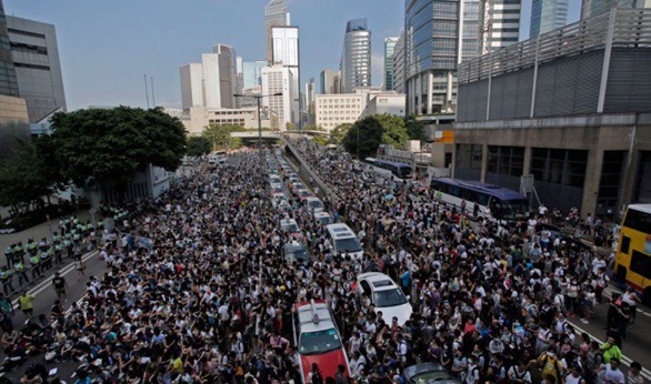 وحث زعماء ومؤيدو حركة (احتلال وسط هونج كونج بالحب والسلام) المواطنين على الانضمام للاحتجاج للضغط على بكين للسماح بإجراء انتخابات حرة في المستعمرة البريطانية السابقة.