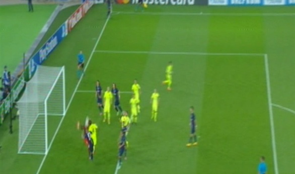 تقدم المدافع البرازيلي ديفيد لويز لسان جيرمان في الدقيقة العاشرة وصحح الارجنتيني ليونيل ميسي الأوضاع لبرشلونة بهدف التعادل بعدها بدقيقة واحدة قبل أن ينهي الايطالي ماركو فيراتي الشوط الأول بالهدف الثاني للعملاق الباريسي في الدقيقة 28 .
