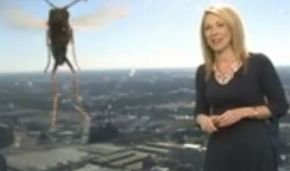 اقتحمت نحلة ضخمة استوديو برنامج على الهواء بقناة "فوكس 59"، لتثير ذعر "جينيفر كيثمر" مقدمة النشرة الجوية والتى كانت تمزح حول زيادة عدد النحل في المنطقة قبل لحظات من اقتحام نحلة ضخمة للمشهد.