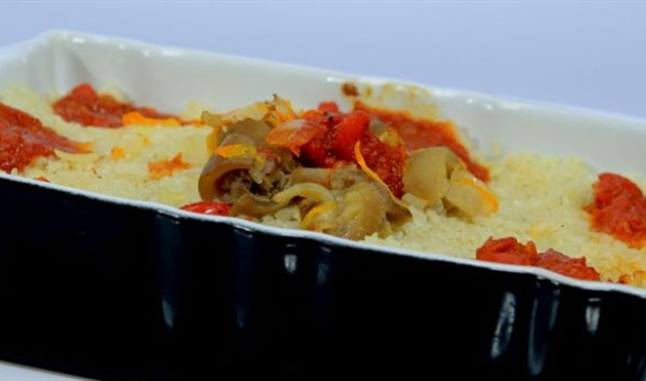 - بعد تحميص العيش ضعيه في البايركس و بعد ثم ضيفي الصلصة
