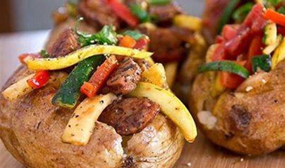 البطاطا المشوية بالسجق والخضروات للشيف " أبو البنات "