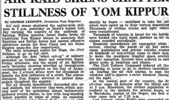 وتحت عنوان "صفارات إنذار الغارة الجوية تكسر هدوء يوم كيبور"، كتب مراسلها جورج ليونوف التقرير التالي في السابع من أكتوبر 1973.