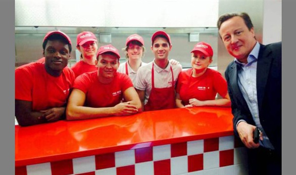 وقال في المطعم أن صديقه باراك أوباما قد أوصاه بتجربة مذاق الطعام في هذه السلسلة من المطاعم، وجلس كاميرون هناك مع زوجته سامانتا لتناول وجبة من الهامبرجر والبيرة بـ 26.5 جنية استرليني.