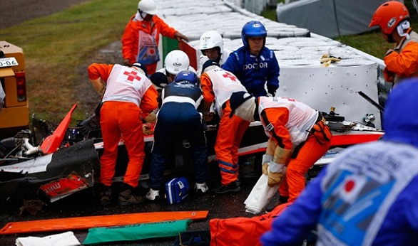 وفقد بيانكي السيطرة على سيارته بسبب المطر الشديد، في موقع كان يتلقى فيه زميله الألماني أدريان سوتيل إسعافات طوارئ بعد أن تعرض لاصطدام بدوره.