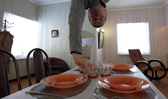 وذكرت صحيفة "ديلي ميل" البريطانية أن هذا المنزل "المقلوب"، والذى يتدلى كل شيء فيه من السقف، ما هو إلا خداع بصري صمم لإدارة رأس زواره الذى يشعرون بإثارة استثنائية في فولجوجراد الروسية.