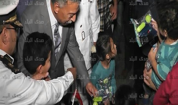 كما قام مدير الأمن والضباط بتوزيع الأعلام ولعب الأطفال والهدايا التذكارية على المواطنين لمشاركتهم الاحتفال بعيد الأضحى المبارك الذي تزامن مع احتفالات مصر بذكرى نصر أكتوبر المجيد.