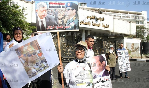 بالصور..مؤيدو مبارك يتجمعون أمام مستشفى المعادى العسكرى رافعين صور "السيسى"