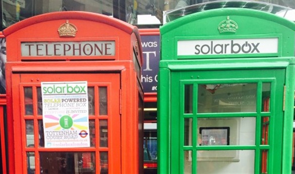 تستعد شركة بريطانية تدعى Solarbox، متخصصة في توفير حلول الطاقة الشمسية، لاستبدال أكشاك الهواتف العمومية في بريطانيا بأخرى لشحن الهواتف المحمولة في الخارج.