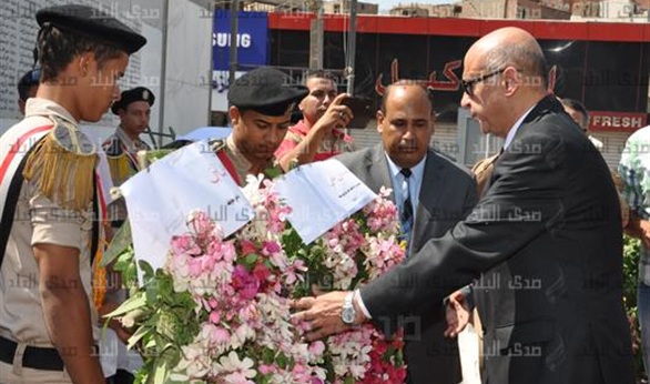 وقام المحافظ ومدير الأمن اللواء إبراهيم هديب، والعقيد أمير سلام المستشار العسكري للمحافظة، بوضع أكاليل الزهور على قبر الجندي المجهول ثم قراءة الفاتحة ترحما على شهداء الواجب من أبناء مصر المخلصين .