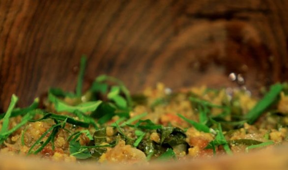- يرفع و يضاف اليه الريحان و الزعتر مع الملح و زيت زيتون