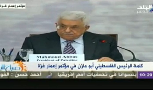 وجه الرئيس الفلسطيني محمود عباس، التحية لمصر وللرئيس السيسي على جهده الذي بذله لتحقيق التهدئة والعمل على إنهاء الحصار الاسرائيلي على قطاع غزة وعلى توجيهاته لاستضافة المؤتمر على أرض مصر والذي يأتي استمرارا للدور الريادي الهام لمصر.