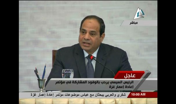 وقال السيسي في بداية كلمته: "يطيب لي في البداية أن أرحب بكم على أرض مصر وأنقل لكم تحية شعب مصر لحضوركم اليوم إلى القاهرة، وأؤكد تضامننا مع الشعب الفلسطيني الشقيق في محنته، لنتفق معا لتقديم أفضل السبل لحكومته الوطنية لاعادة إعمار غزة التي كانت وسيظل جزءًا من أرض فلسطين الذي يتطلع إلى استقلالها.