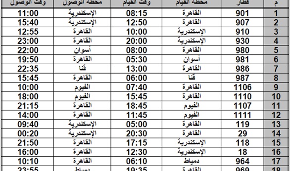 ننشر جدول مواعيد القطارات.. والنقل تعيد تشغيل 18 قطارا قبلي وبحري