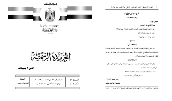 تم نشر القرار في الجريدة الرسمية بتاريخ 15 أكتوبر 2014.
