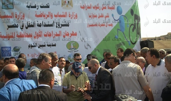 قاد الدكتور خالد فهمى وزير البيئة والدكتور احمد شرين فوزى محافظة المنوفية المهرجان الاول للدراجات بالمحافظة والذى ياتى ضمن مشروع استدامة النقل بشبين الكوم , وبحضوراشرف صبحى مساعد وزير الشباب والرياضة والدكتور وجية عزمى رئيس اتحاد الدراجات.