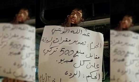 وكتب التنظيم على جثة القتيل: "كان يقوم بتصوير مقرات تابعة لتنظيم الدولة مقابل مبلغ مالي وقدره 500 ليرة تركي"، دون ذكر الجهة المستفيدة من صوره.